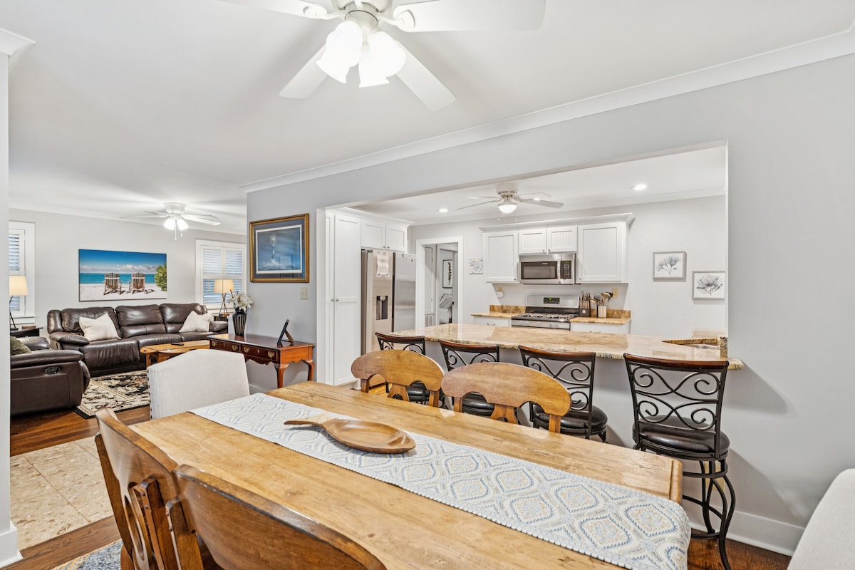Spacious and family-friendly retreat perfectly located near the Charleston Greenway with peaceful tidal water views. This 4-bedroom, 2.5-bath home offers plenty of room for groups of all sizes, featuring three bedrooms with comfortable queen beds and a fourth bedroom with a queen/twin bunk—ideal for families or extra guests.